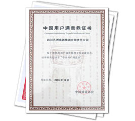 中国用户满意鼎证书