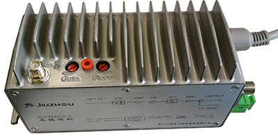 Connecting with Optical transmitter GFS1310F-B, -1dBm optical input, 59 channels PAL-D RF input, 10dB Equalizer |