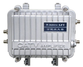 GFT-8-S1A Series amplifiers are designed for 862MHz CATV RF distribution. Forward path signal amplification is carried out in two stages: The first by a MMIC amplifier IC, and the second by a GaAs amplifier module. Signal is divided into two by a plug-in tap or splitter.